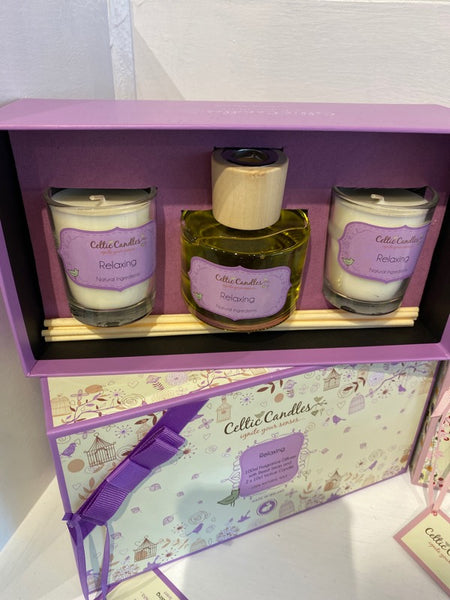 Our amazing gift sets (add on item) contain 2 x 10cl votive and 1 x 100ml diffuser. Available in 3 aromas. Minimum order value for delivery is €50. Let us know the preferred date and time for delivery and the message for the card in the instructions for seller box, at the check out.